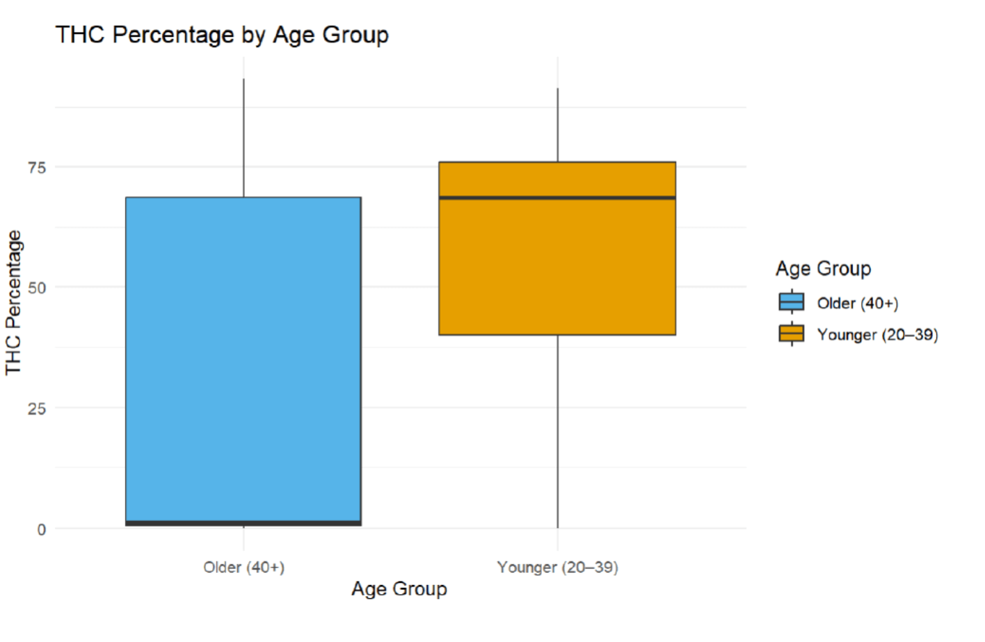 - Younger patients were consuming products with higher THC percentage than patients in the older group.